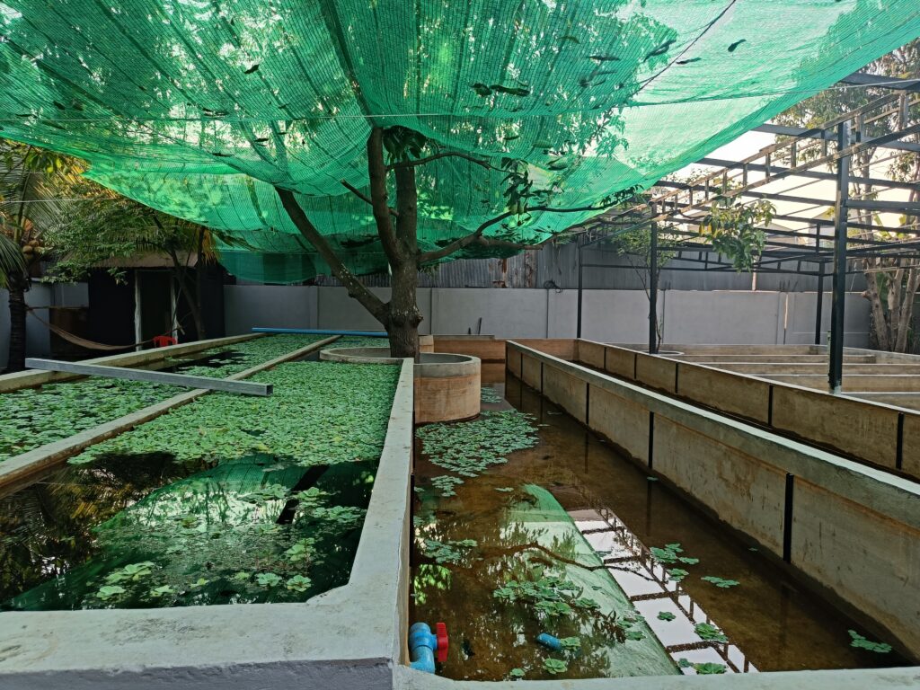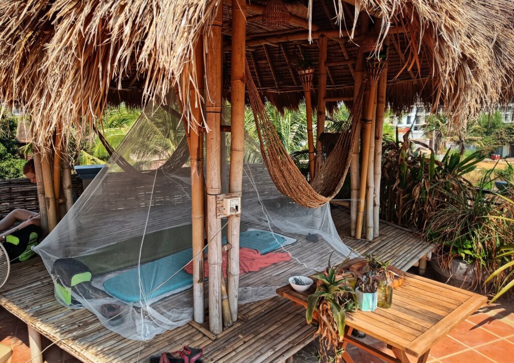 Siem Reap is very touristy, mainly because of the famous temples of Angor Wat, more about that later. We spend the night with Attila, a Hungarian we met through couchsurfing. He is busy setting up a crayfish farm and restaurant. In between the hustle and bustle, he shows us his lobster garden. Because of the heat inside, we sleep on his roof terrace under a mosquito net. At 4am the neighbour starts sweeping her garden and at 5.30am the earplugs can no longer stop the sound of a wedding. All because it is the coolest time of day, but still very hot.