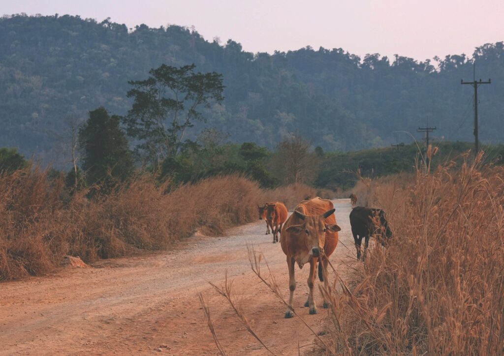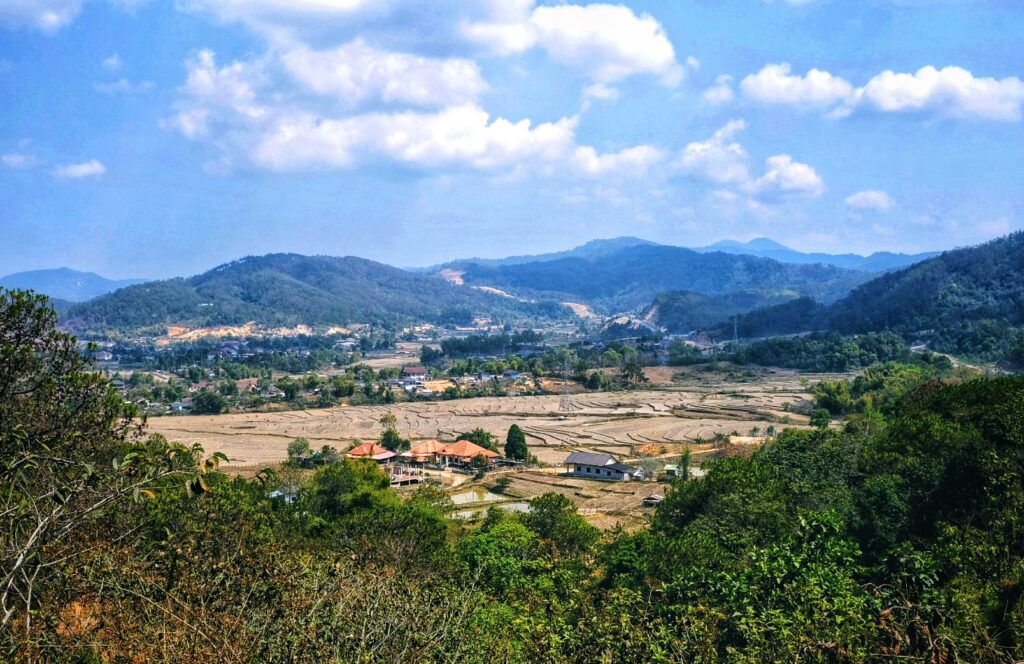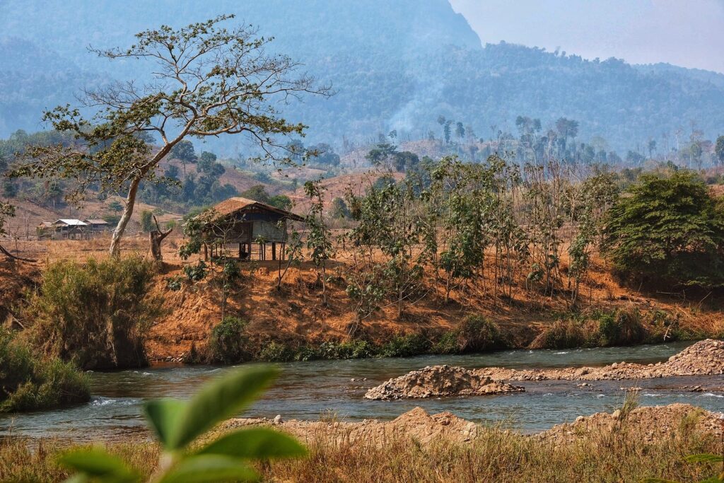 After Phonsavan, we continue our journey south from central Laos. We now travel through a rural area that is very sparsely populated and where many farmers live. Shops are limited to a living room with some sweets and biscuits or a small table in front of a house with some fruit and sometimes vegetables. We also see that the landscape is changing quite rapidly. The cold mountains, where we often needed a down coat, are giving way to the drier and warmer interior. Outside the villages we see huge areas where deforestation has taken place or is still taking place. In many places there are bare patches, the ground is still charred, or ash is billowing in the air. This is to make way for more intensive agriculture and higher-yield plantations.