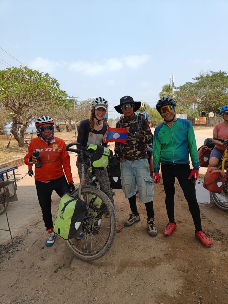 After a forced rest day yesterday due to Audrey’s food infection, we are able to cycle towards Thakhek today. There we meet a couple from New Zealand who have been living in the Netherlands for a few years. Their names are Bron and Renée, both also on a Dutch Santos touring bike, which they have named Rusty and Sunset. We have a bite to eat and in the morning we agree to cycle further south together. It is always nice to exchange experiences and stories with other cyclists. So far we have met very few other cyclists.