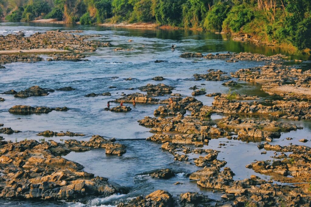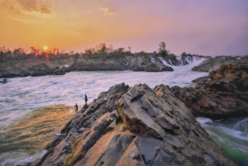 As we stand and listen to the roar of the water, the sun casts a golden glow over the landscape. We admire the fishermen balancing on the rocks, trying to catch fish and even jumping into the water to pull out their nets. The laughter of children playing in the water reminds us of the importance of the ‘Mighty Mekong’ to the local people.
