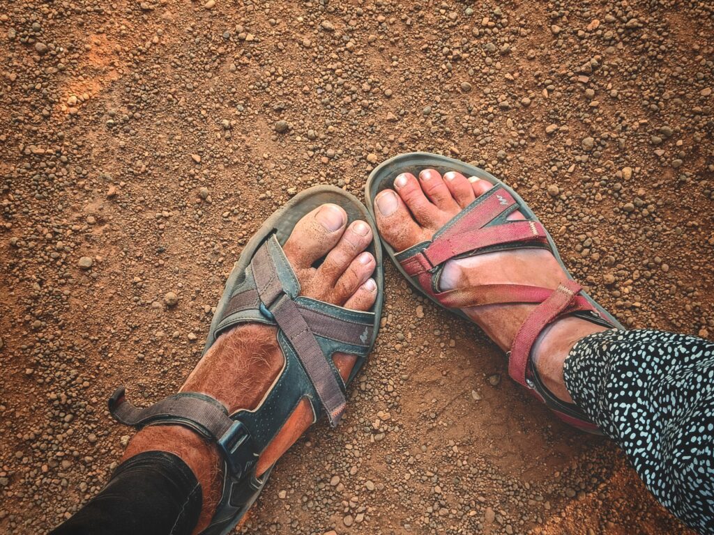 Unfortunately, there’s nothing we can do about it, so we just have to keep going. Just as Audrey has had enough, a friendly man emerges from a wooden hut that we had not seen before due to the darkness. He sees us struggling to push the bikes through the sand. He comes up behind Audrey’s bike and helps us push it on his flip-flops. We thank him and are motivated to make the last few kilometres to the main road. I don’t think we’ve ever been so happy to see tarmac again. And stars… Lots of stars!