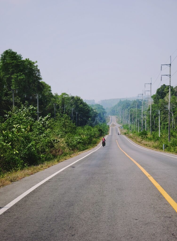 Over the next few days we take as many shortcuts as we can towards Bangkok. Every day people stop and turn around to give us food and drink. A motorbike overtakes us and returns in the other direction with 2 bottles of coke. A woman drives by on her pickup to sell things, but stops a little further on to give us pineapples, sandwiches and cold drinks. A woman rides by on her scooter, holding out a bunch of ‘longan’. Fruit we have never eaten before. When we stop at what looks like a Thai Starbucks chain to escape the scorching midday heat, we hear the young staff behind the counter giggling and occasionally throwing in a few words of English. Suddenly a girl brings in 2 bottles of orange juice. “It’s from him, for you“‘ she says, pointing to the counter. Later we exchange details and to this day they follow our journey on Instagram.