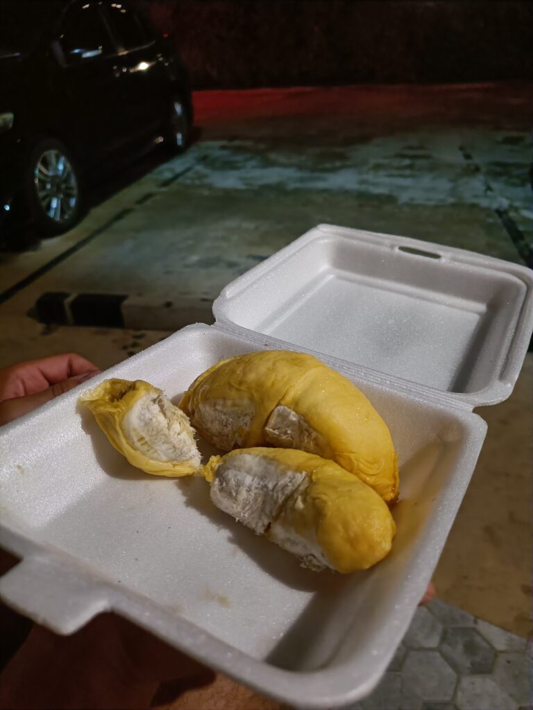 The next day we stop in a village outside Bangkok. Suddenly there is a heavy storm outside with rain and thunder. As soon as it stops, we ride the last 500m to a guesthouse. The 2 owners couldn’t believe their eyes when they saw us arriving on our bikes. They are delighted as the man is a keen cyclist himself. Without asking, they upgrade the room and we park the bikes in the room. That’s the way it’s done in Asia. They also give us some more Durian. A type of fruit that is very popular in South East Asia, both for its smell and its taste! In many public places, such as trains, buses and hotels, it is forbidden to eat durian. But here, the owner of a guesthouse is serving the durian herself. Before we know it, Eloy says, the whole room smells like a mixture of garlic, onion and sweat socks. Trying a bite doesn’t make it any better. Our taste buds don’t really appreciate it. They say you have to eat it at least 3 times before it gets better.