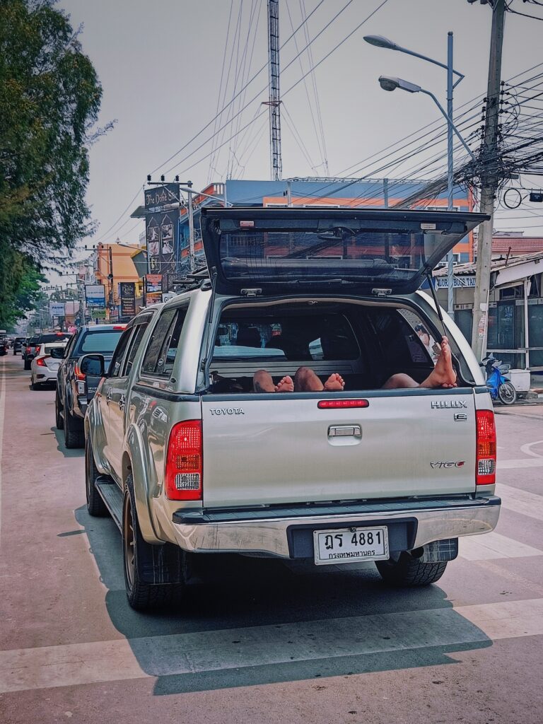 We were sitting somewhere having a cold drink when we heard a loud bang and saw a delivery man lying on the ground next to his scooter. The man seemed unhurt, but we regularly see scooters involved in accidents. We had been warned earlier that Songkran, the festival we talked about earlier, is also known as the ‘week of death’. There is a lot of drinking during the festival and people get on scooters and into cars. Road deaths double during these days. Thailand has some of the most dangerous roads in the world. Especially the combination of motorbikes and pickups causes many deaths. So we take extra care and avoid the main roads as much as possible, which is fortunately easy in Thailand.