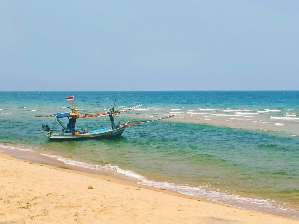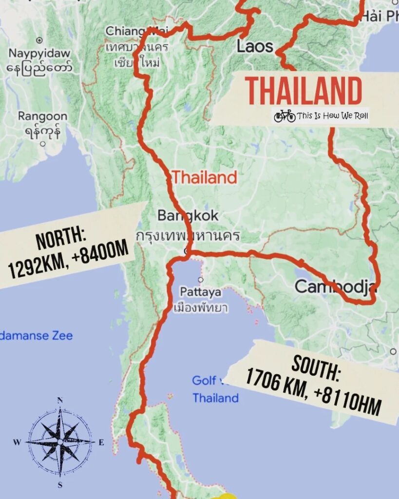 We try to leave Bangkok in a rickety little boat, barely a metre wide, with our two packed bikes. We (fortunately) do not go into the water and within a few minutes we are in a completely different world. A small, quiet, green, overgrown island. In no time at all we are cycling along the Gulf of Thailand. After the Persian Gulf between Iran and Dubai, this is the second time we see a sea. Bizarre after 13,000 km! 🫣