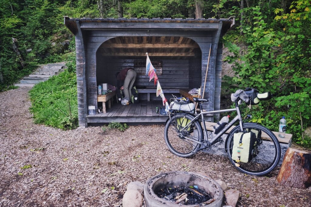 And another day we emerge from the overgrown bushes, covered in mud, with overweight bikes. It must have been a strange sight for the Germans Hanna and Tim. They are travelling by car and have already pitched their tent in the shelter. Without hesitation they offer us a place in the shelter. Bizarrely, Tim then says he thinks he recognises us, probably from social media. We spend a cosy evening around the campfire, sharing the last of the marshmallows and watching the brilliant night sky above us. There, in that vast sea, a few stars are falling. Coincidence or a sign from the universe? 💫