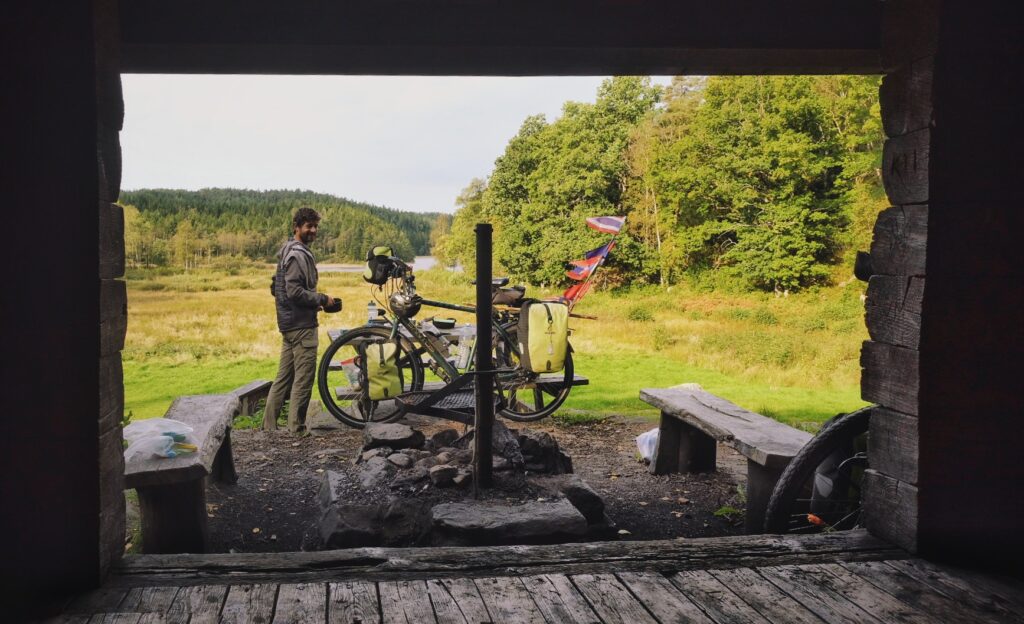 We take a couple of ferries and pass through Lysekil. Famous for its rocky coastline and charming traditional wooden houses in all sorts of bright colours. Although the Swedish coast is beautiful, we decide to cycle inland. It is quieter and there are more forests and nature reserves with shelters. Autumn is now in full swing and sometimes the weather can be quite bad with lots of rain and strong winds. So the shelters, in all shapes and sizes, are nice places to spend the night. But there is something else that is fascinating.