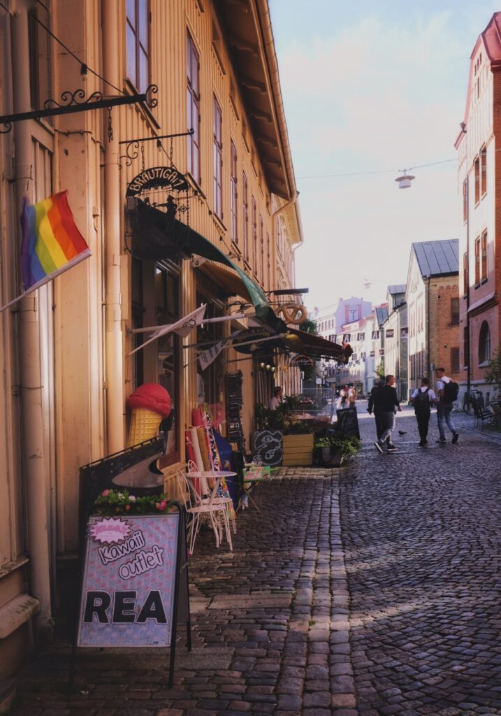 There are currently 3 students living in the flat. Each has their own room and we get to sleep on a bunk bed in the living room. In between showers, we explore Gothenburg. The city of Volvos and nice neighbourhoods. We drink coffee and have a snack in the café of the old people’s home, among grandma’s furniture, but it turns out to be cosy too.