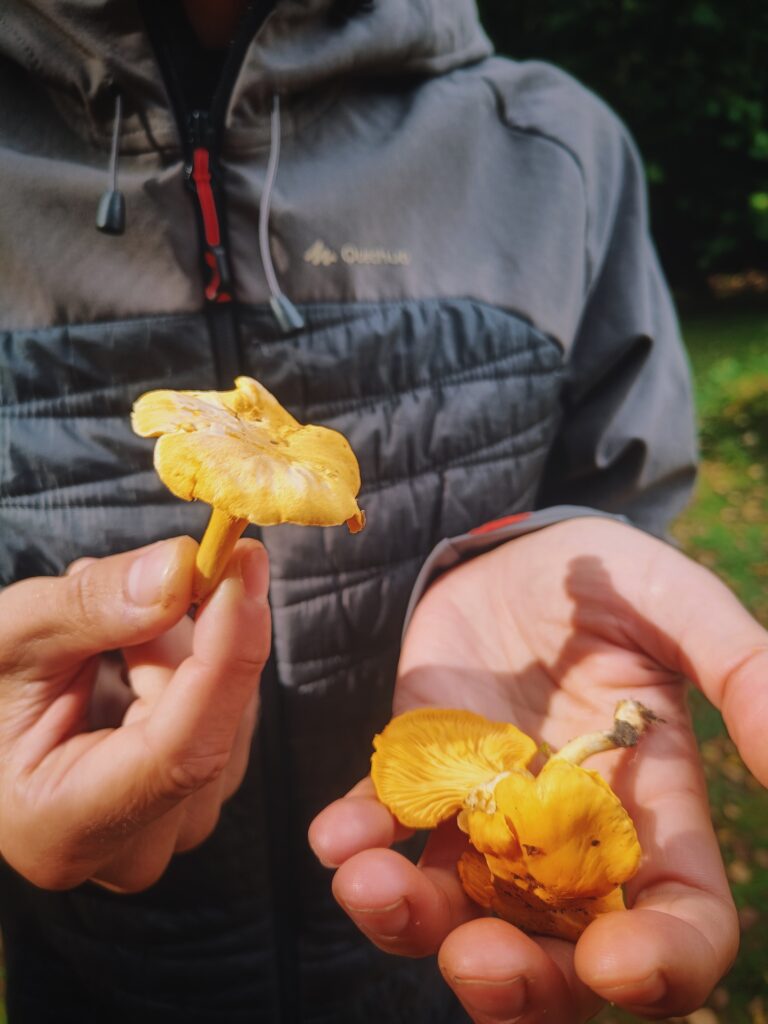 During the days we spend with Angela, she shows us the forests around the house and introduces us to mushroom picking. A national pastime in Sweden. She teaches us which ones to avoid. And the favourite of many: the yellow chanterelles. Recently she even found a turquoise mushroom on a piece of old wood – unbelievable that nature can do this! Dinner will be a mushroom tasting.